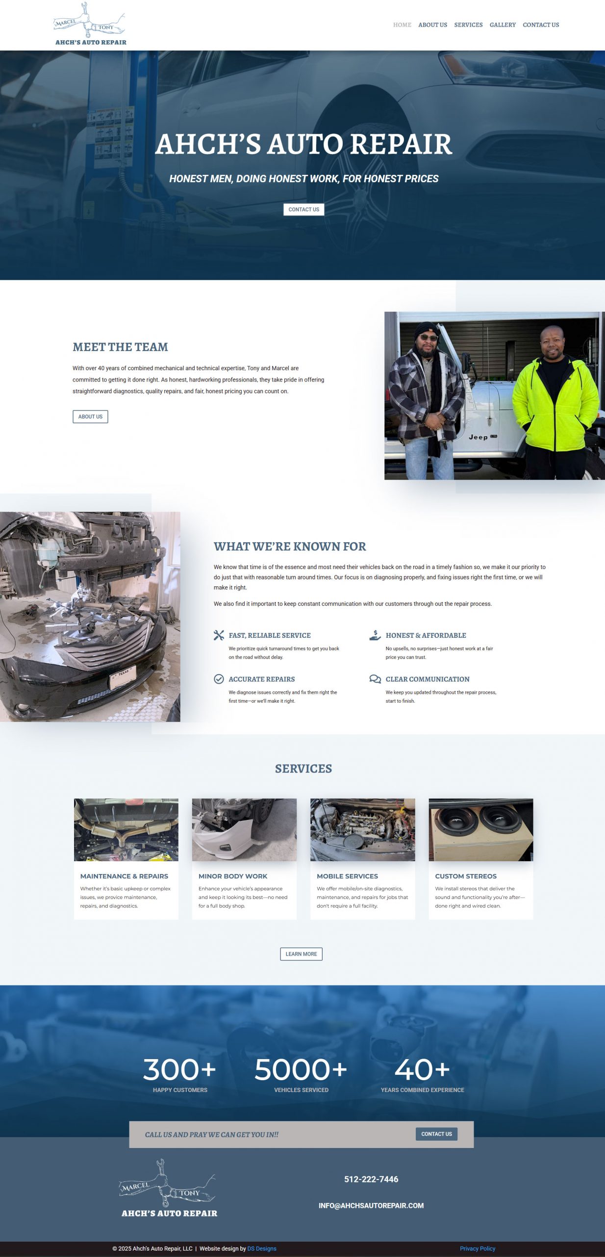 Ahch’s is a start-up Auto Repair company that needed a website from scratch.  As a new business, price was a concern, and I was able to meet there needs with this eye-popping, inviting website design.