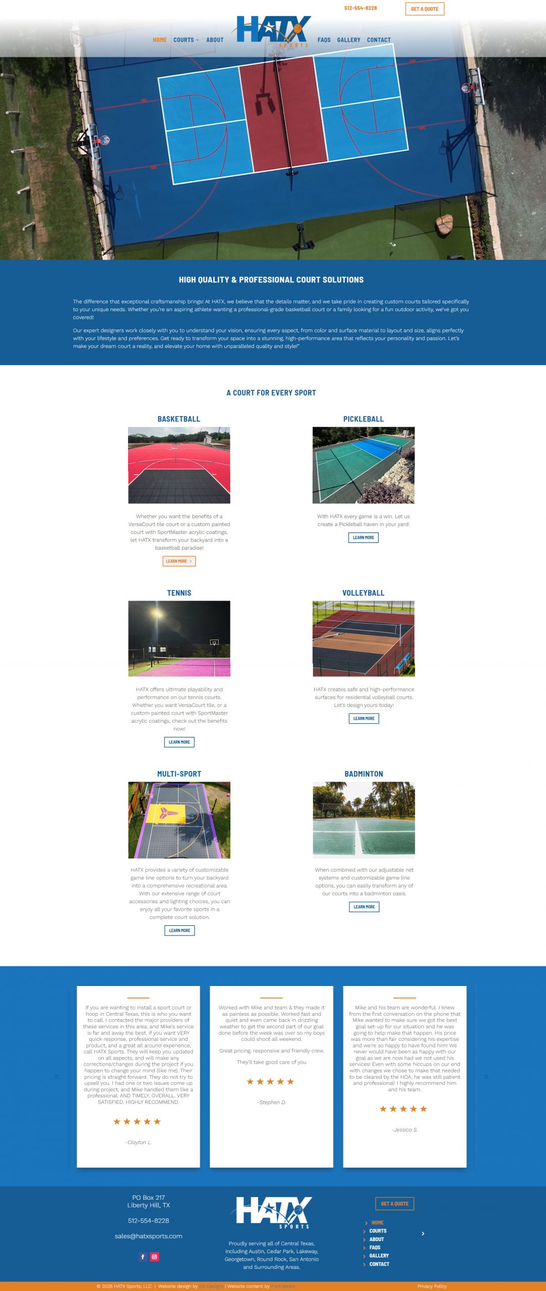 HATX Sports is a leader in central Texas installing a court for every sport.  The company had recently changed owners and needed a fresh new website to replace the outdated “mom and pop” look.